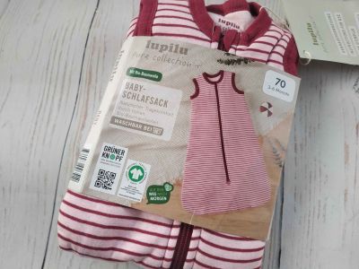 Спальный мешок трикотажный с утеплителем Lupilu Малиновый полосатый - Размер 110см