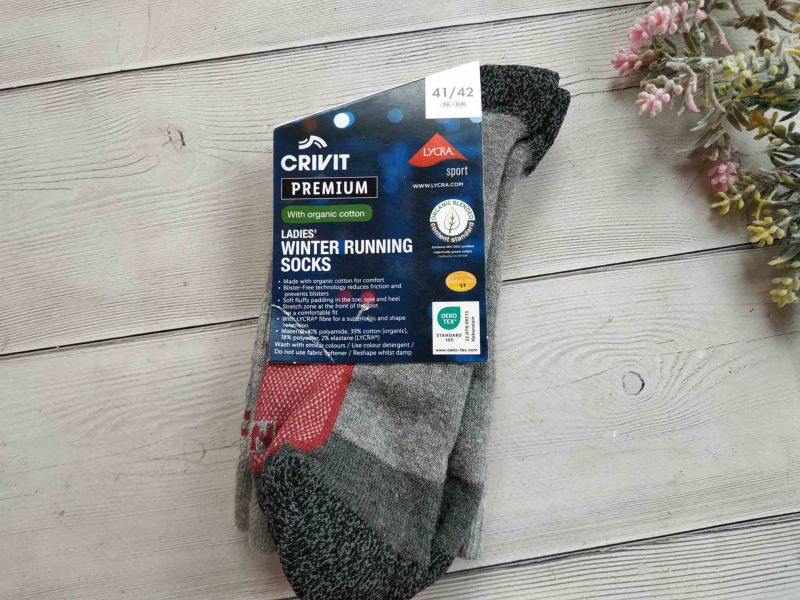 Женские зимние беговые носки Crivit Premium — из органического хлопка с мягкой амортизацией