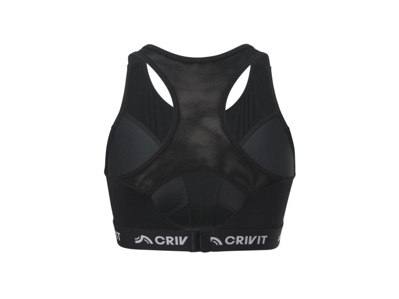 Функциональные mesh-вставки обеспечивают циркуляцию воздуха и комфорт во время движения, а эластичная лента с логотипом Crivit добавляет фиксации и спортивного стиля. Спинка с анатомичным вырезом обеспечивает свободу движений.