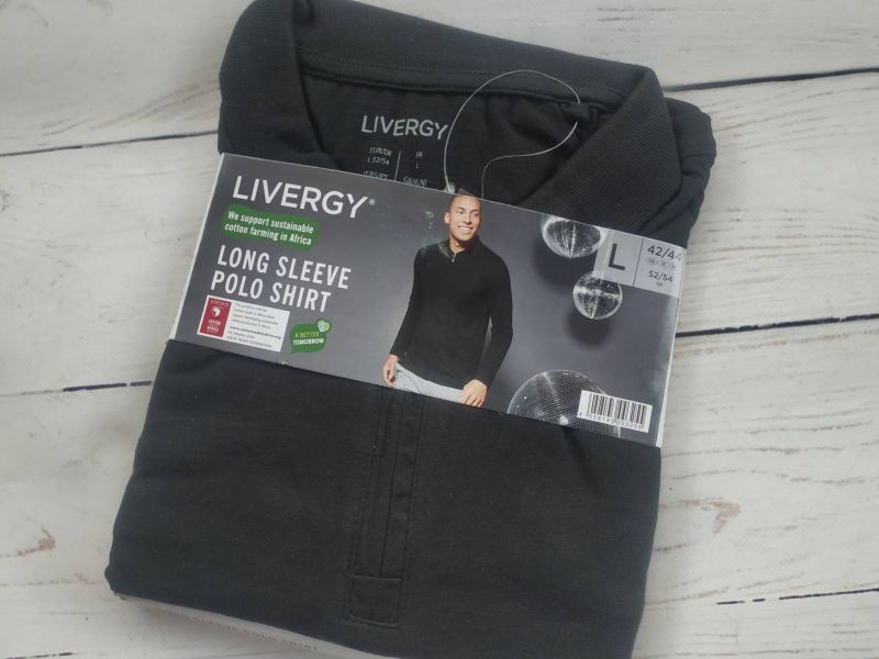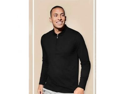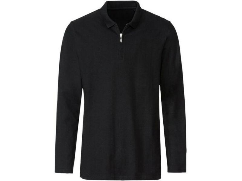 Чоловіча футболка з довгими рукавами Поло на блискавці Livergy Чорна - Розмір (М, L, XL)