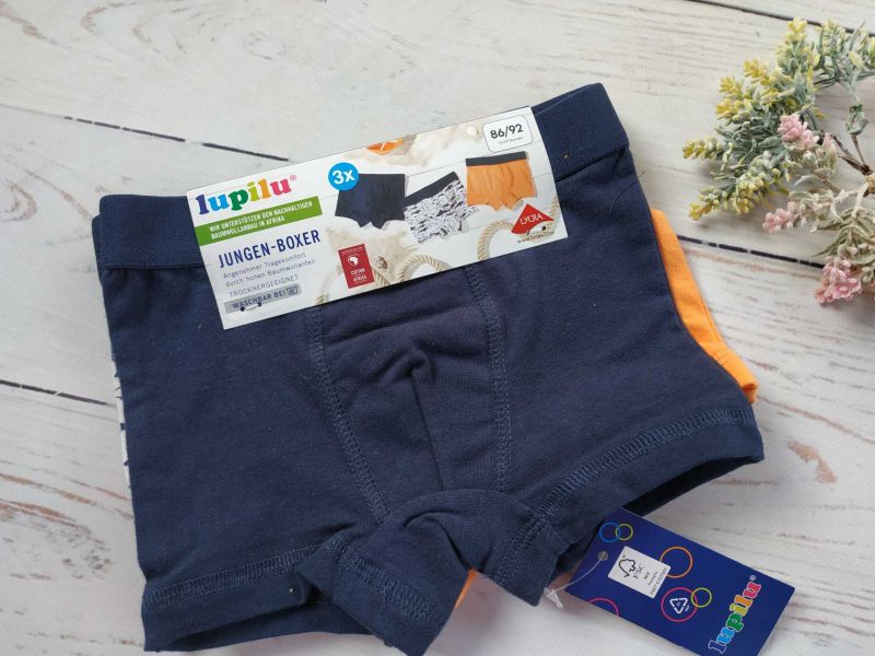 Боксери виконані з м'якої трикотажної тканини, з еластичним поясом. З високим вмістом бавовни. Підходять для повсякденного носіння. Дитяча білизна для хлопчиків.Німеччина