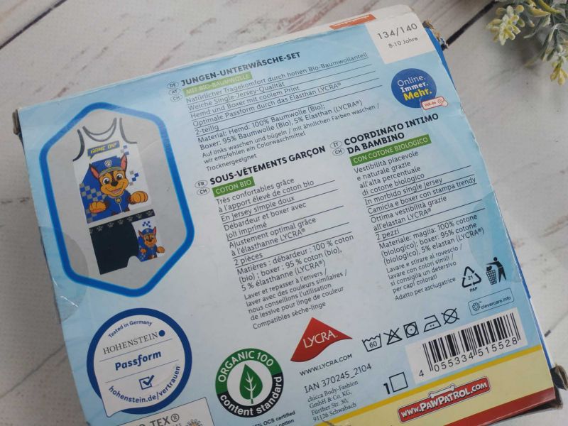 Труси виконані з м'якої трикотажної тканини, з еластичним поясом. З високим вмістом бавовни. Підходять для повсякденного носіння. Дитяча білизна для хлопчиків. Німетчина.